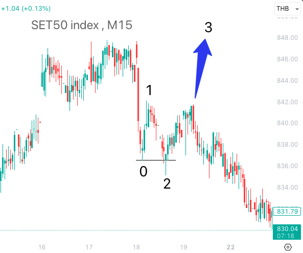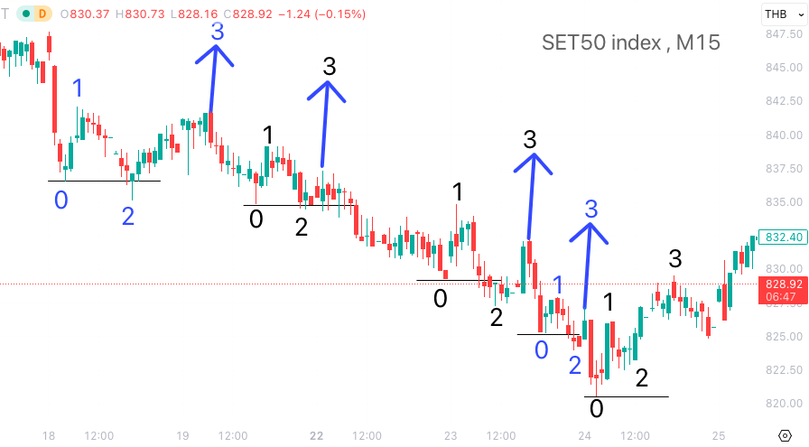 ภาพบนเป็นตัวอย่างการหลุดโลว์ 0 แต่ก็สามารถตั้งเทรนกลับไปได้เหมือนเคสในหนังสือ Elliott Wave Principle